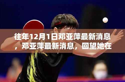 十二月一日,对于众多体育迷来说,是一个值得纪念的日子,这一天,我们回顾邓亚萍的最新消息,重温她在乒乓球领域的辉煌成就,作为一位杰出的乒乓球运动员,邓亚萍以其卓越的技艺和坚韧的精神赢得了世界的赞誉,本文将重点讨论邓亚萍的近期动态、社会影响以及她在体育界的地位。