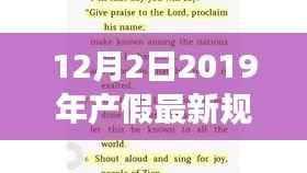 随着社会的进步与发展,对于女性权益的保障越来越受到重视,特别是在职场与生育之间的平衡问题上,产假政策显得尤为关键,关于“12月2日发布的最新产假政策调整”引起了社会各界的广泛关注,本文将围绕这一话题展开论述,探讨其对社会、企业和个人家庭的影响,并阐述个人观点与立场。